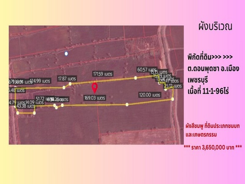 ขาย! ที่ดินใกล้ถนนเพชรเกษม จ.เพชรบุรี แปลงใหญ่ 11-1-96 ไร่ ผังสีชมพู !