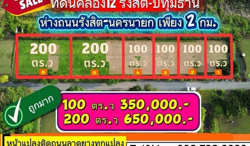 ด่วนที่สุด #ที่ดินคลอง12 รังสิต – ปทุมธานี (ห่างรังสิต-นครนายกเพียง 2 กม.)
