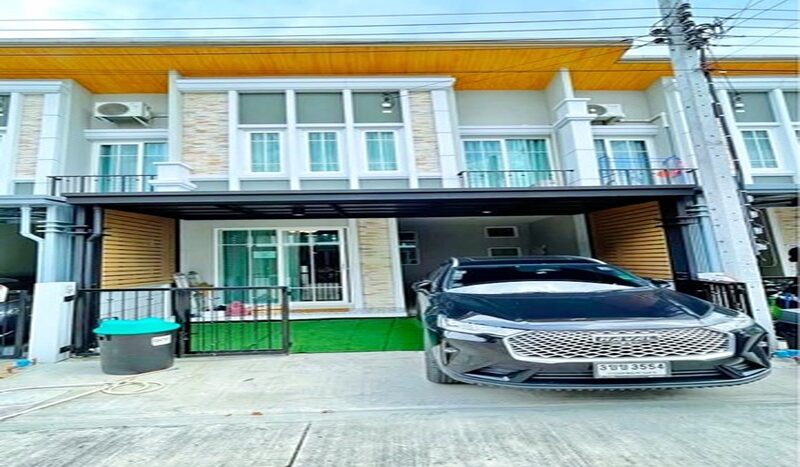 Fully furnished Synphaet Hospital Ramintra 2.4 km. 3-4bed MRT Khubon. 2.2km.2-story loft-style townhouse for rent 20sq.wa. 160sq.m. 2km. Dusit Technology Sch. 2bath easy access to food. Phraya Suren Floating Market 2.4 km. 24,999 B-M. Kanchanaphisek Road.