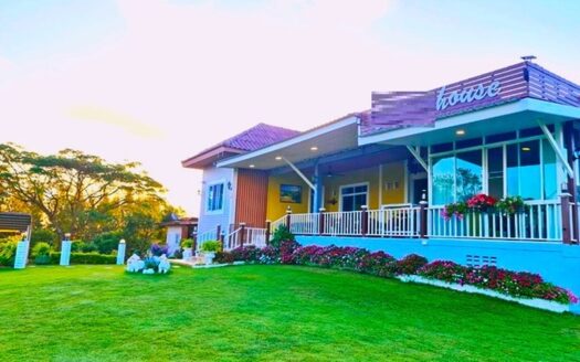 วัดลำทองหลาง 1.9 กม. ให้เช่าบ้านพักสไตล์รีสอร์ตในเขาใหญ่-ปากช่อง 45 ตร.วา. 180 ตร.ม. 2นอน 2 น้ำ รร.บ้านลำทองหลาง 1.8 กม. 25,899 B-M. บรรยากาศ เงียบสงบ ร่มรื่น วิวภูเขา ทิวทัศน์ที่ยอดเยี่ยมของภูเขา