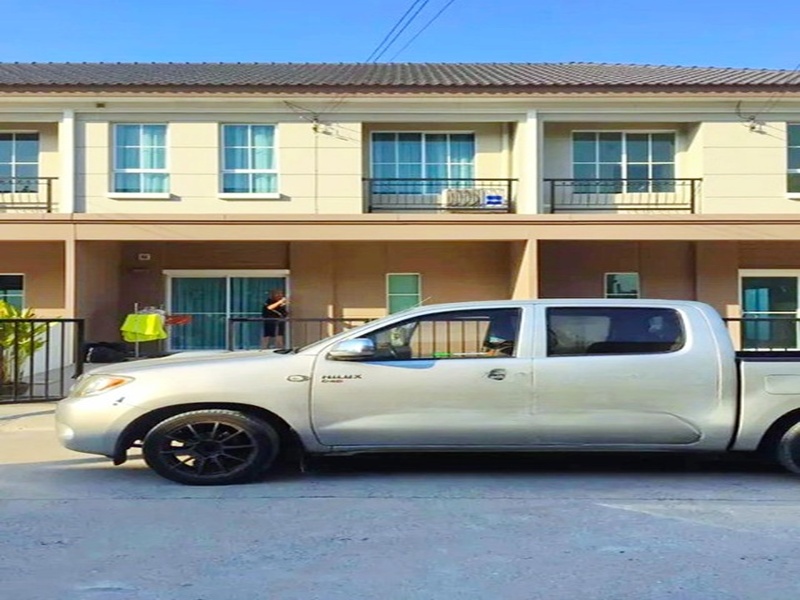 LamLukKa Khlong7, Nimit Mai-Maitrichit 2-story townhouse for rent on the main road 18 sqwa 145sqm, CharoenKan Market Khlong8 3bed 2bath 8,499B-M., selling for 2.49 million baht. BaanFahLeMarche, 2.2km.