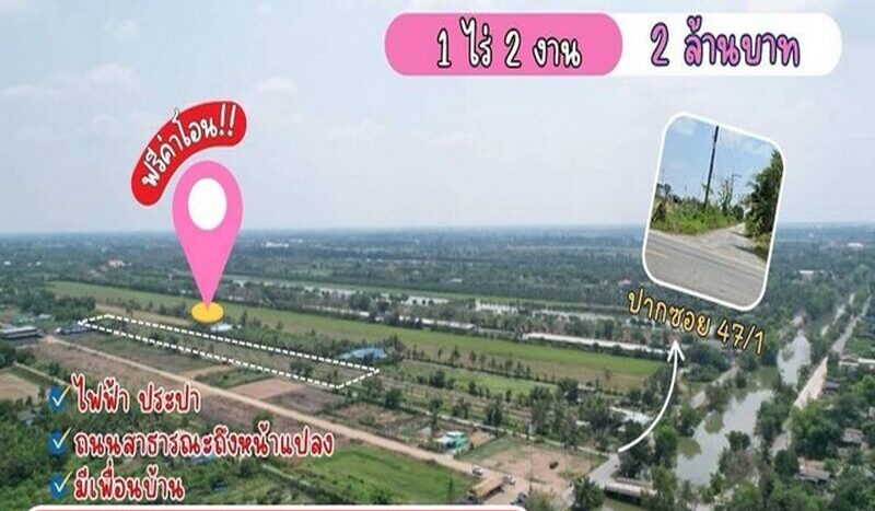 #ที่ดินคลอง 8 บึงบอน 47/1 (ซอยดาบสมภักดิ์) รังสิต ปทุมธานี 1 ไร่ 200 ตร.ว เพียง 2 ล้านบาท