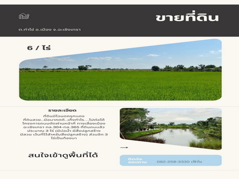 📍āļ—āļĩāđˆāļ”āļīāļ™āļŠāļ§āļĒ..āļĄāļĩāļ­āļ™āļēāļ„āļ•āļ”āļĩ *āđ‚āļ„āļĢāļ‡āļāļēāļĢāļ–āļ™āļ™āļ•āļąāļ”āļœāđˆāļēāļ™āļŦāļ™āđ‰āļēāļ—āļĩāđˆ āļ—āļēāļ‡āđ€āļĨāļĩāđˆāļĒāļ‡āđ€āļĄāļ·āļ­āļ‡āļ‰āļ°āđ€āļŠāļīāļ‡āđ€āļ—āļĢāļē āļ—āļĨ.304-āļ—āļĨ.365 āļ—āļĩāđˆāļ”āļīāļ™āļ–āļĄāđ€āđ€āļĨāđ‰āļ§āļ›āļĢāļ°āļĄāļēāļ“ 3 āđ„āļĢāđˆ (āļĄāļĩāļšāđˆāļ­āļ™āđ‰āļģ āļĄāļĩāļŠāļīāđˆāļ‡āļ›āļĨāļđāļāļŠāļĢāđ‰āļēāļ‡ āļĄāļĩāļŠāļ§āļ™ āđ€āļ§āđ‰āļ™āļ—āļĩāđˆāđ„āļ§āđ‰āļŠāļģāļŦāļĢāļąāļšāļžāļ·āđ‰āļ™āļ—āļĩāđˆāļāđˆāļ­āļŠāļĢāđ‰āļēāļ‡)