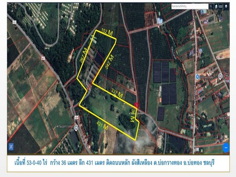 ราคาถูก ที่ดินทำฟาร์ม ทำโกดัง เนื้อที่ 53-0-40 ไร่ ไร่ละ 6 แสน ต.บ่อกวางทอง อ.บ่อทอง จ.ชลบุรี