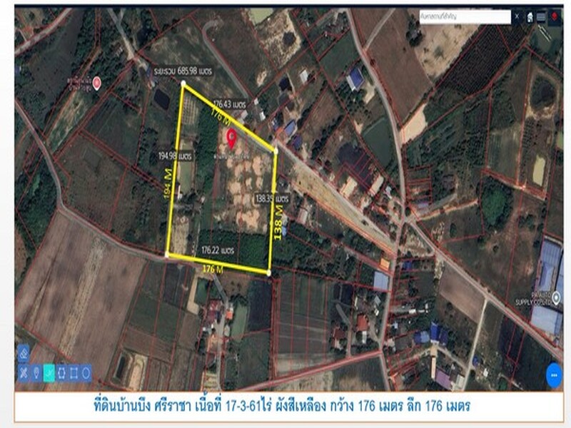 ที่ดินราคาถูก บ้านบึง ไร่ละ 1.55 ล้าน เนื้อที่ 17- 3- 61 ไร่ วาละ 7,161 บาท บ้านบึง ศรีราชา ชลบุรี