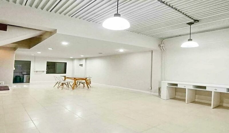 The Nine Center Rama 9, 654 Srinakarin Intersection, Baan Klang Muang, Rama 9, ARL Hua Mak 700 m. Townhouse for rent, 3 floors, 2-storey garden, 20 sq m., 40 sq m., St. Mark’s International School 1.1 km., furnished, 3 bedrooms, 3 bathrooms, suitable for home office, residence, 29,999 B-M.