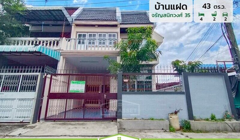 ขายบ้านแฝด 2 ชั้น หลังมุม จรัญสนิทวงศ์ 35 ซอยแก้วเงินทอง 19 เดินทางสะดวก เข้า-ออกได้หลายเส้นทาง ใกล้โรงพยาบาลศิริราช เนื้อที่ 43 ตร.ว. ขายเพียง 4,800,000 ล้านบาท