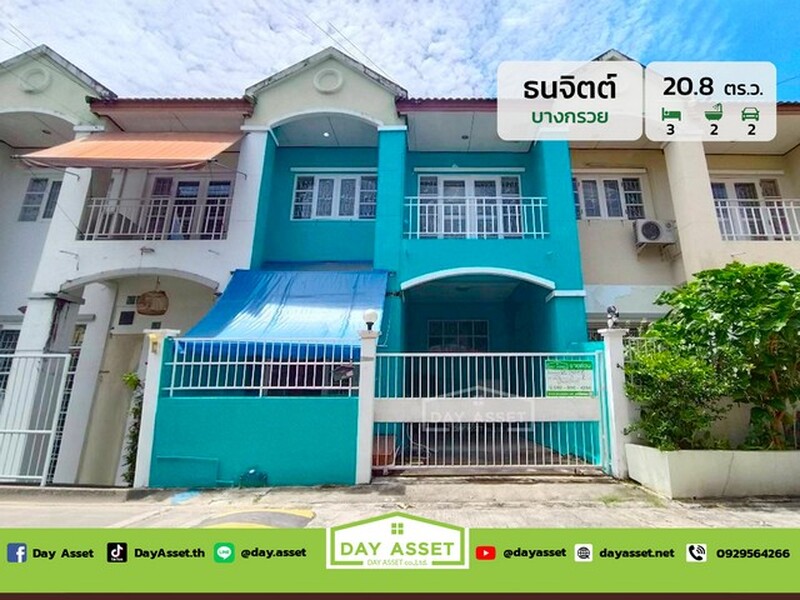 ขายทาวน์โฮม 2 ชั้น หมู่บ้านธนจิตต์ บางกรวย : Thanajit Village Bangkruai ใกล้มหาวิทยาลัยมหิดล / Centra ศาลายา เนื้อที่ 20.8 ตร.ว. ขายเพียง 1,690,000 ล้านบาท
