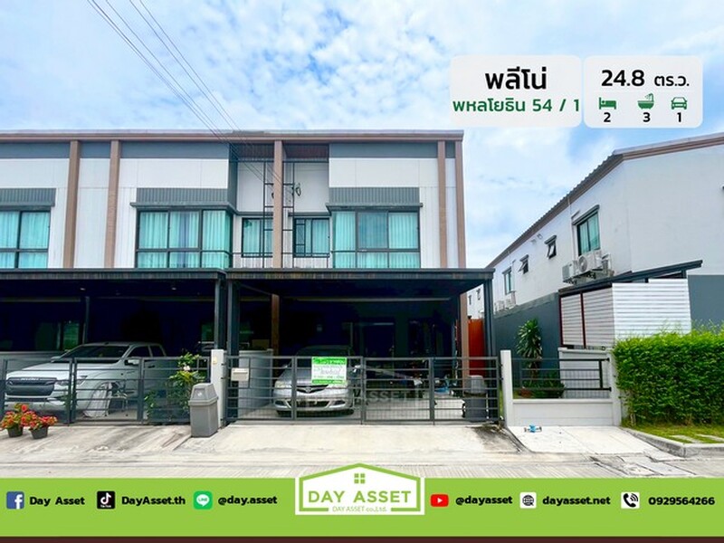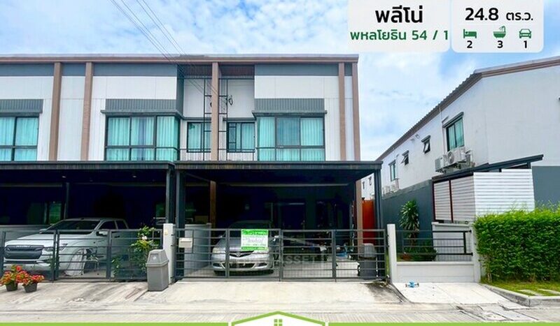 ขายทาวน์โฮม 2 ชั้น หมู่บ้าน พลีโน่ พหลโยธิน 54/1 : Pleno Pahonyothin 54/1 เดินทางสะดวก ใกล้รถไฟฟ้า ทางด่วน และตลาดยิ่งเจริญ เนื้อที่ 24.8 ตร.ว. ขายเพียง 3,800,000 ล้านบาท