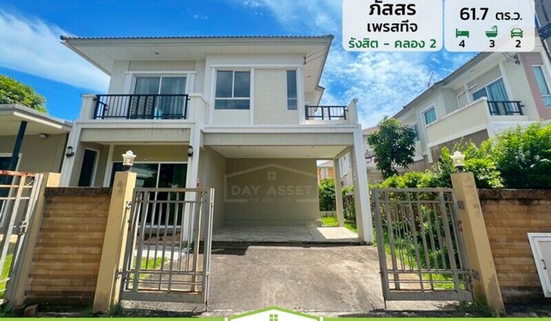 ขายบ้านเดี่ยว 2 ชั้น หมู่บ้านภัสสร เพรสทีจ รังสิต-คลอง 2 : Passorn Prestige Rangsit-Klong 2 ใกล้โรงเรียนโชคชัยรังสิต เดินทางสะดวกขึ้นลงทางด่วนโทลล์เวย์วิภาวดี รังสิต เดินทางเข้า – ออกเมืองง่าย 「ฟรี ของแถมตามตกลง」 เนื้อที่ 61.7 ตร.ว. ขายเพียง 4,500,000 ล้านบาท