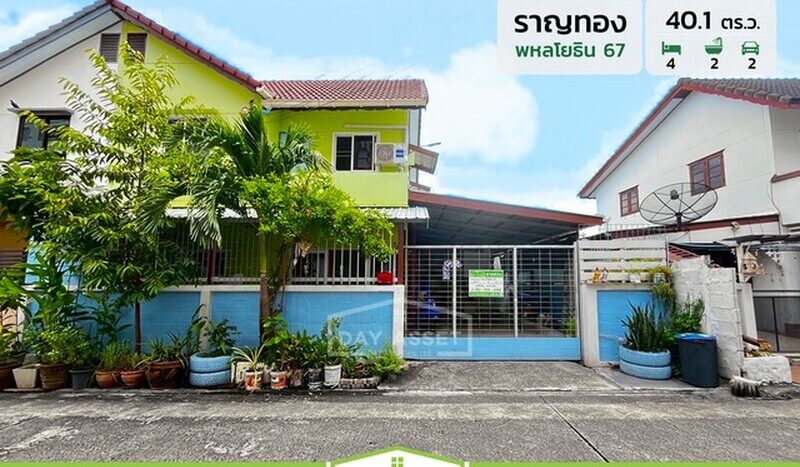 ขายบ้านแฝด 2 ชั้น หมู่บ้านราญทอง พหลโยธิน 67 : Ranthong Village, Phahonyothin 67 ต่อเติมหลังคาหน้า-หลัง ทำเลดี เดินทางสะดวกสบาย ใกล้รถไฟฟ้าสายสีเขียว และสนามบินดอนเมือง เนื้อที่ 40.10 ตร.ว. ขายเพียง 4,500,000 ล้านบาท