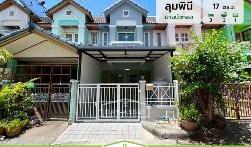 ขายทาวน์เฮาส์ 2 ชั้น หมู่บ้านลุมพินี บางบัวทอง : Lumpini Bang Bua Thong ใกล้ Central เวสต์เกต เดินทางสะดวกทั้งทางรถไฟฟ้าและทางด่วน เนื้อที 17 ตร.ว. ขายเพียง 1,990,000 ล้านบาท
