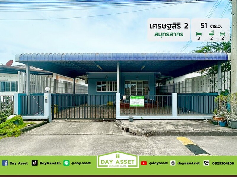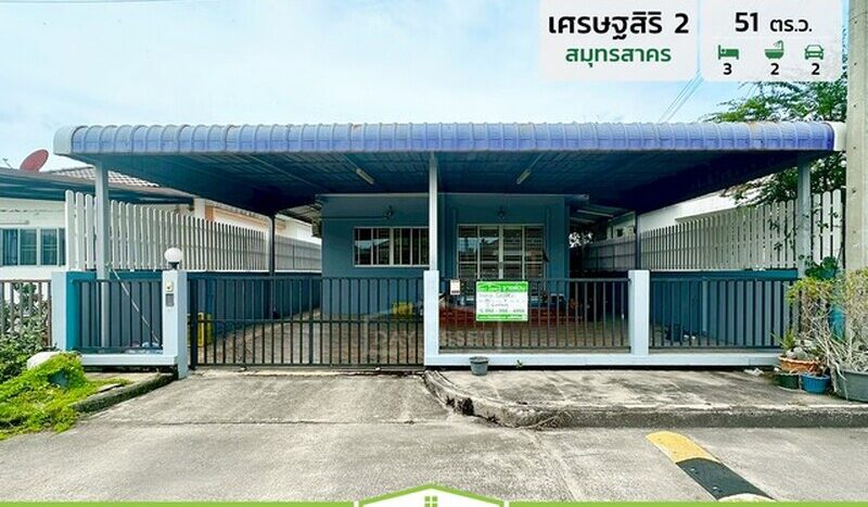 ขายบ้านเดี่ยวชั้นเดียว หมู่บ้านเศรษฐสิริ 2 สมุทรสาคร : Setthasiri 2 Samut Sakhon มีพื้นที่่รอบตัวบ้านกว้าง ใกล้แหล่งชุมชน เดินทางสะดวก ใกล้ตลาดมหาชัย เนื้อที 51 ตร.ว. ขายเพียง 2,690,000 ล้านบาท.