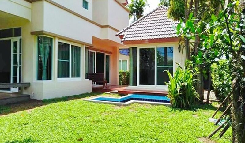 M650537 ให้เช่าบ้านเดี่ยวหลังมุมใน หมู่บ้านสัมมากร ทำเลดีเยี่ยม อยู่ตรงข้ามสระว่ายน้ำของโครงการ บรรยากาศร่มรื่น เงี