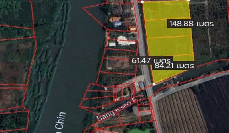 2) ที่ดินด้านข้างติดคลองบางแก้วฟ้า กว้างประมาณ 21 ม. (มีประตูระบายน้ำข้างที่ดิน)