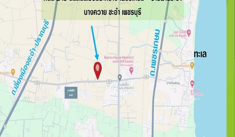 ขายที่ดิน ชะอำ 2 ไร่ บางควาย ชะอำ เพชรบุรี ติดถนนเชื่อม เพชรเกษม-บายพาส ใกล้การไฟฟ้าชะอำ