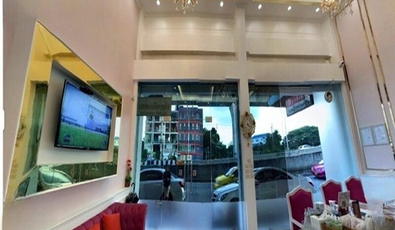 – ด้านล่างเป็นผนังและประตูกระจกเต็มบาน พร้อมประตูเหล็กม้วนด้านนอก