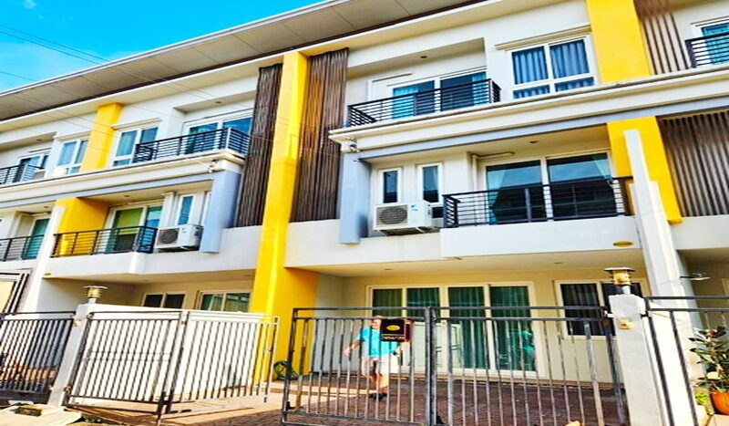 ARL LatKrabang 4.3 km. Lotus LatKrabang52 400m. 3-story townhouse for rent 22 sq.wa. 232 sq.m. Chaokhun Thahan Lat Krabang Village 1 km. 3 bed 2 bath Hua Takhe Market 350 m. 17,998 B-M. Easy access to the Luang Phaeng Road. Lat Krabang