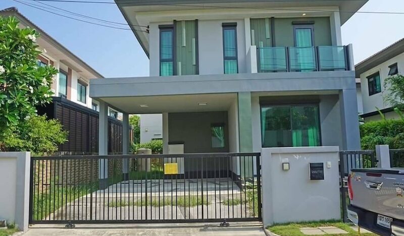 BH3707 House for Sale & Rent – 2-Storey Single House at Burasiri Wongwaen Onnut, prime location near Suvarnabhumi Airport, Mega Bangna, Suan Luang Rama IX, with easy access to King Kaew Road and Motorway.