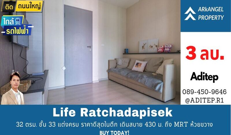 ขายด่วน! คอนโด Life รัชดาภิเษก 1 นอน 32 ตรม. ชั้น 33 แต่งครบ ราคาดีสุดในตึก เดินสบาย 430 ม. ถึง MRT ห้วยขวาง