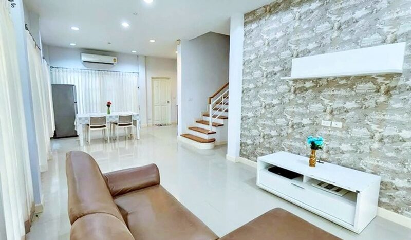 MRT Sri Dan 900m. MRT Samrong 2.79km. 2-story house for rent furnished 25,999 B-M. 36 sq.wa. 145 sq.m. 3.0 km. to Thai-Singapore International School 3 bed 2 bath Soi Sukhumvit 111-115 JAZZ Urban Srinakarin 1.3 km. to shopping areas on Sukhumvit Road. Srinakarin Bangna-Trad Expressway